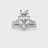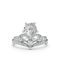 1.71tcw lab-grown diamond ring with a 1.00ct round and 0.50ct pear center combo, plus 0.21ct round side stones. Unique design, D-E-F color, VVS–VS clarity, IGI certified.