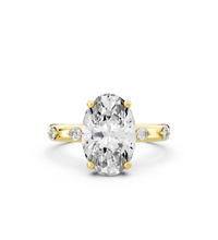 Grown Diamond Ring in Custom gold. Features a 2.50ct Oval center, 0.12tct Round stones. IGI certified, D-E-F color, VVSโ€“VS clarity. Handcrafted, ethical, and endlessly elegant.